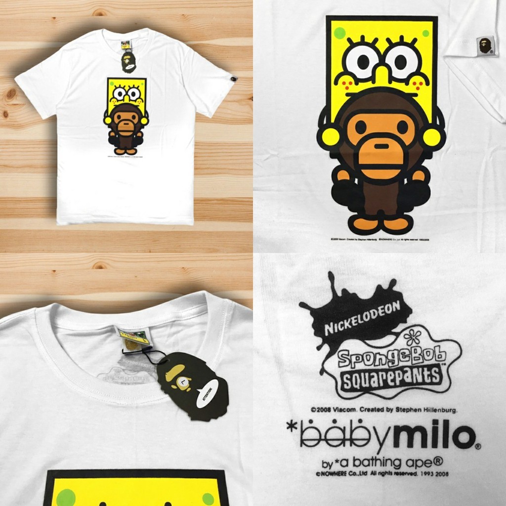Kaos Baju A Bathing Ape Baby Milo Spongebob Sitting White T Shirt 1993 Anime Chart Image Source @ shopee.co.id